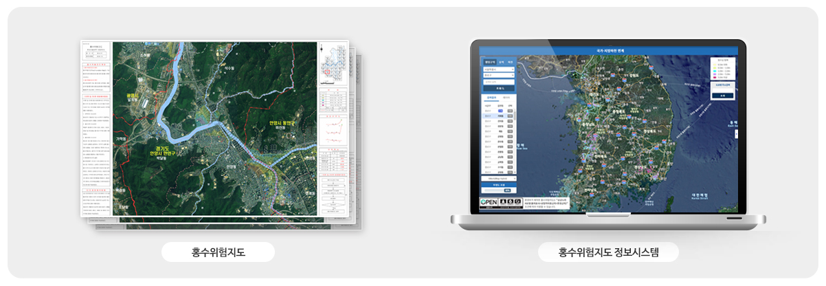 홍수위험지도는 크게 하천범람지도와 도시침수지도 두 종류로 구분된다.