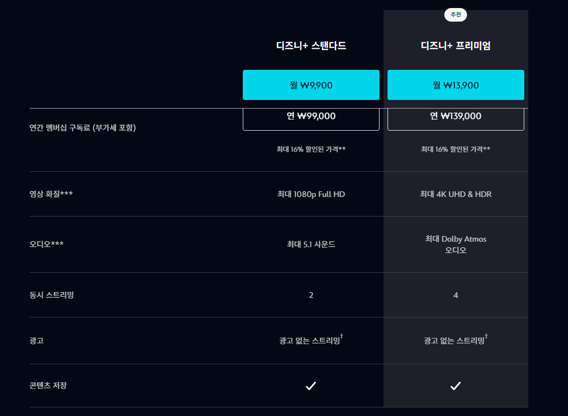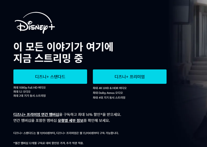 - 디즈니+ 스탠다드: 월 9,900원부터 시작