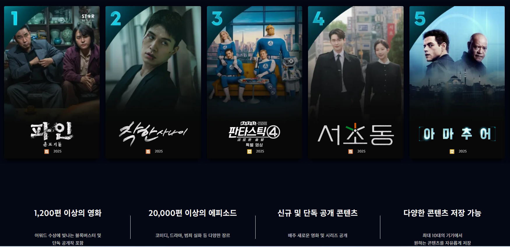특히 디즈니, 마블, 스타워즈 등 글로벌 인기 브랜드의 독점 콘텐츠와 한국 오리지널 콘텐츠의 조화로 다양한 연령층의 시청자들에게 어필하고 있습니다.