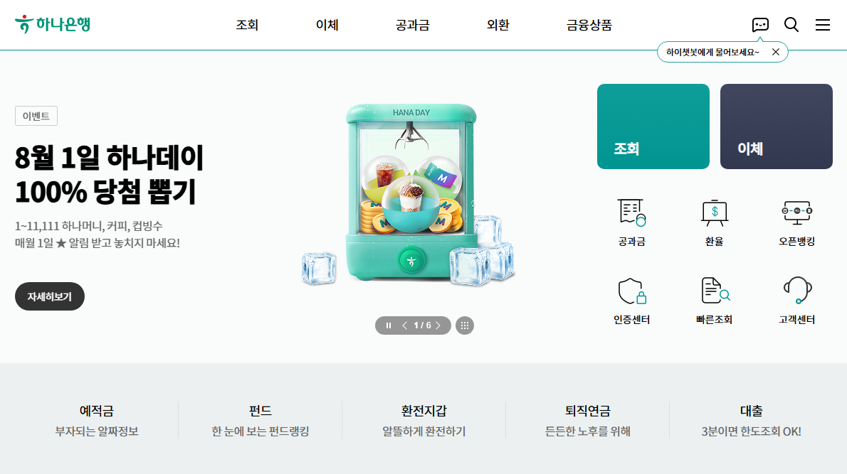 하나은행 개인인터넷뱅킹 홈페이지 서비스