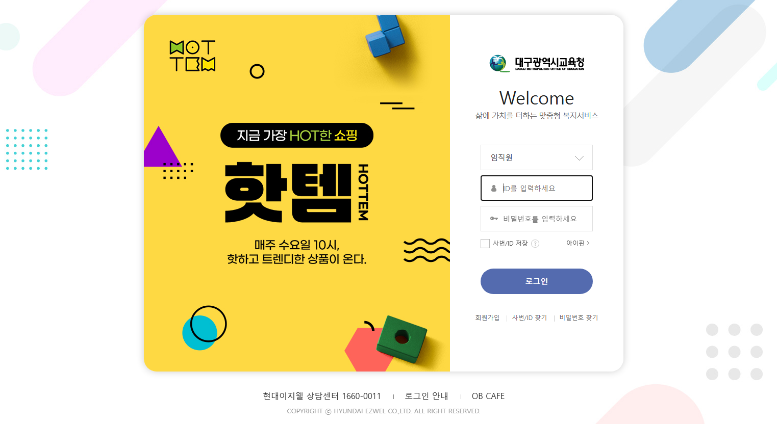 이 복지몰은 현대 이지웰에서 운영하는 시스템으로, 다른 지역 교육청과 달리 공무원연금공단이 아닌 이지웰 시스템을 채택하고 있어 보다 다양한 상품 구매가 가능합니다.