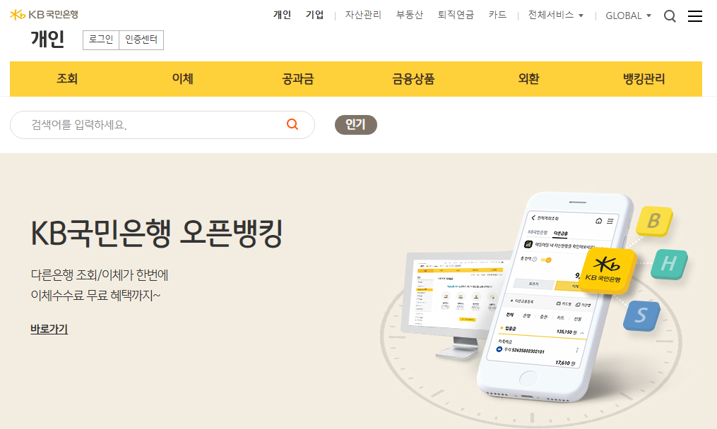 국민은행 개인인터넷뱅킹 홈페이지
