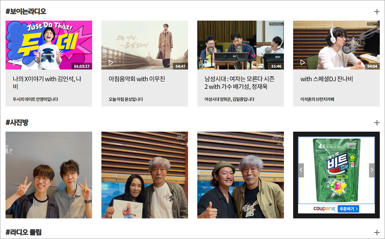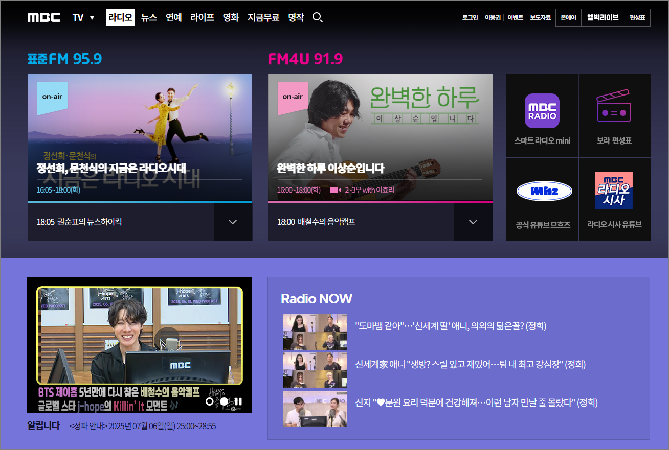 - 보이는 라디오 시청: 라디오 방송을 영상으로도 감상할 수 있음