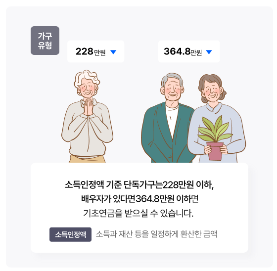 2025년 기준 기초연금 소득인정액 선정기준은 다음과 같습니다: