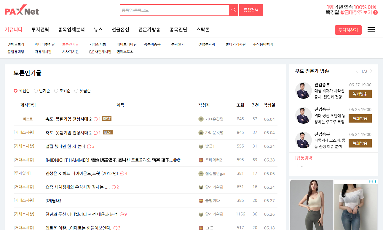 토론인기글 | 커뮤니티 - 팍스넷 증권포털