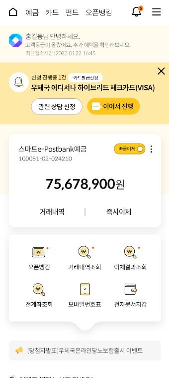 - 앱 명칭: 우체국스마트뱅킹