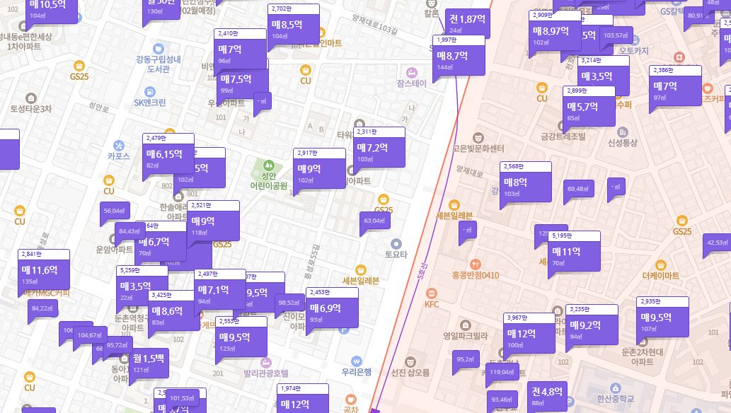 네이버 부동산의 지도 기반 검색 기능은 원하는 지역을 손쉽게 탐색할 수 있도록 도와줍니다. 지도 위에서 원하는 지역을 클릭하기만 하면 주변 매물 정보가 한눈에 보입니다.
