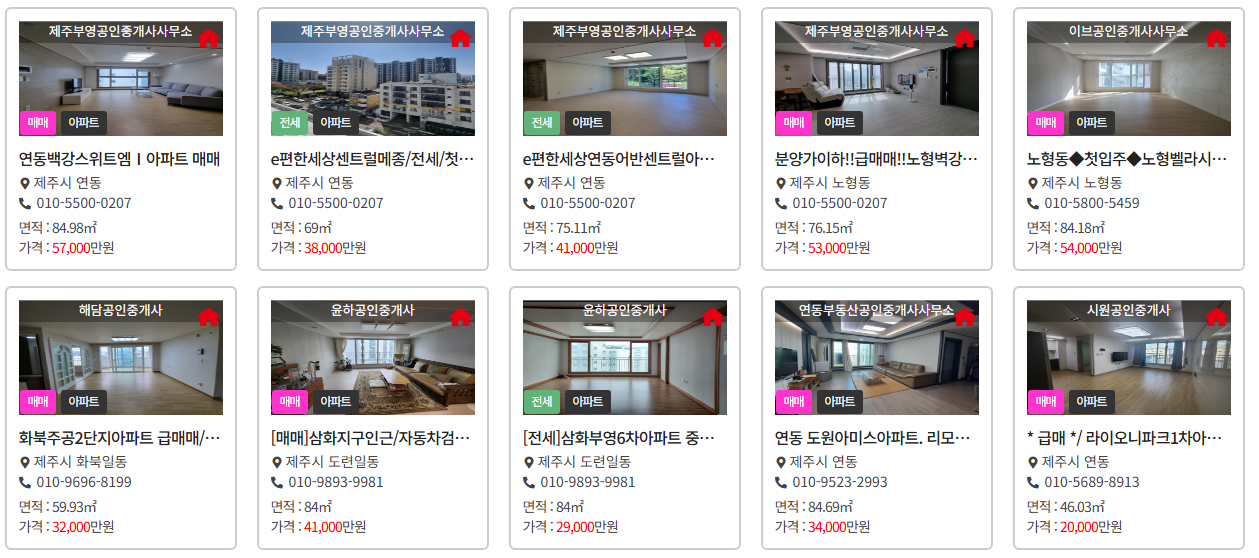 제주시 지역을 중심으로 다양한 아파트와 주택 매물이 등록되어 있습니다. 현재 거래되고 있는 주요 매물들을 살펴보면:
