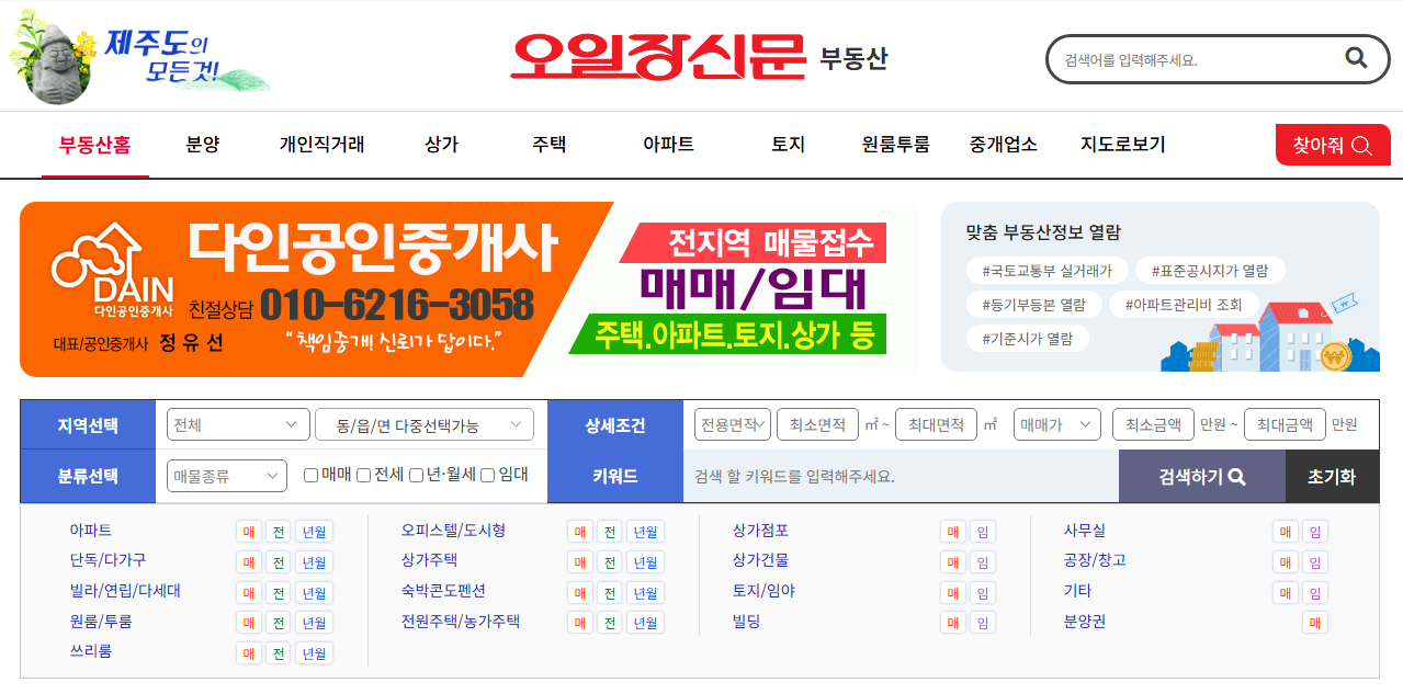 제주 오일장신문 부동산 직거래 장터