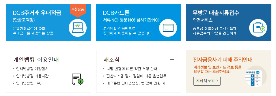 대구은행 개인인터넷뱅킹 홈페이지 개요