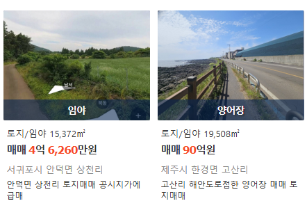 - 5억원 이상: 대형 상가건물, 해안도로변 토지