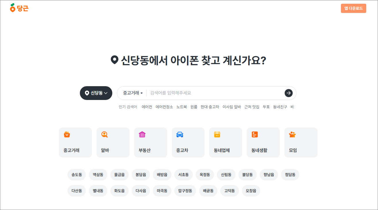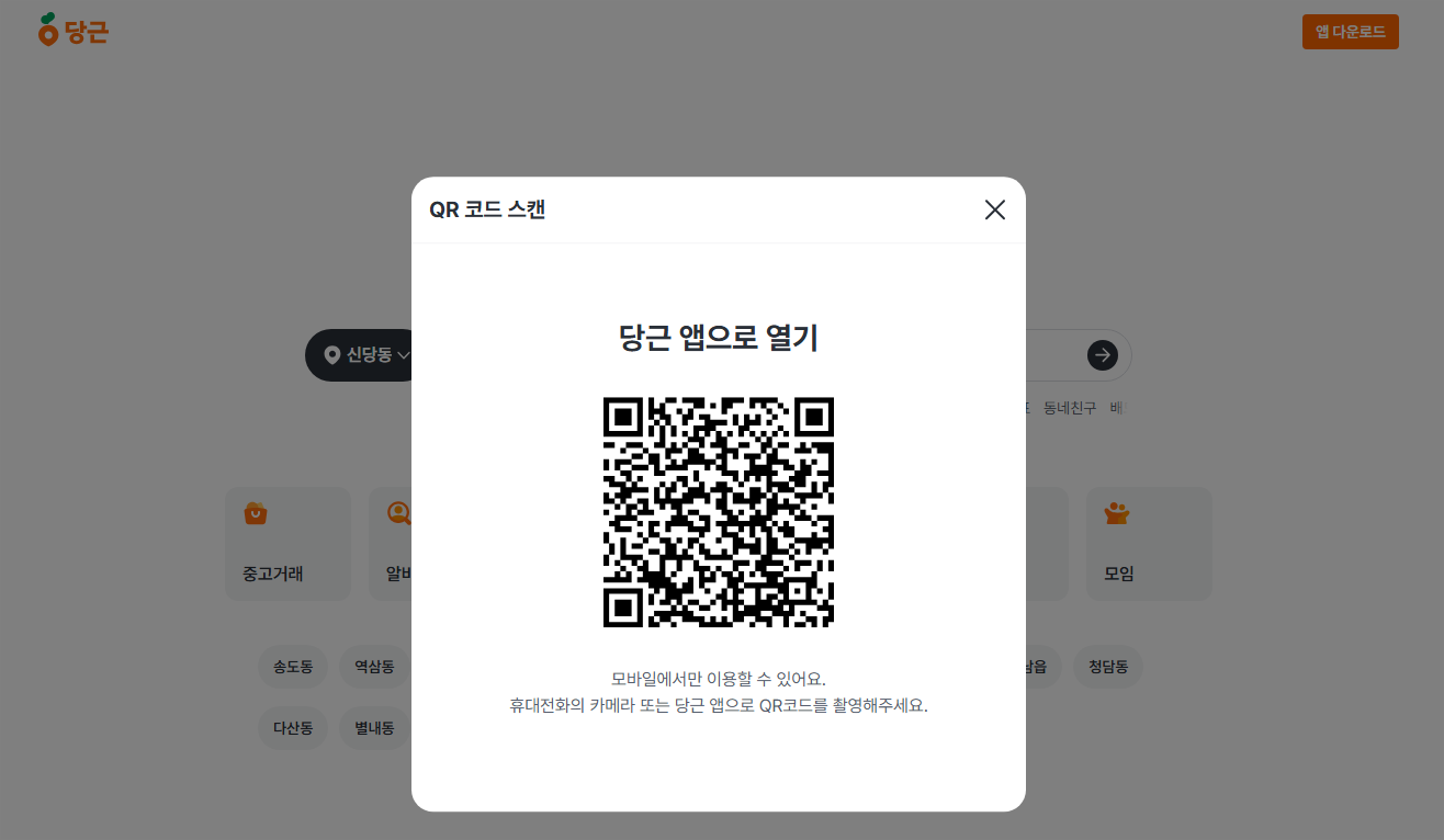 당신 근처의 동네 커뮤니티. 중고 거래부터 동네 정보까지, 이웃과 함께해요. 가깝고 따뜻한 당신의 근처를 만들어요.