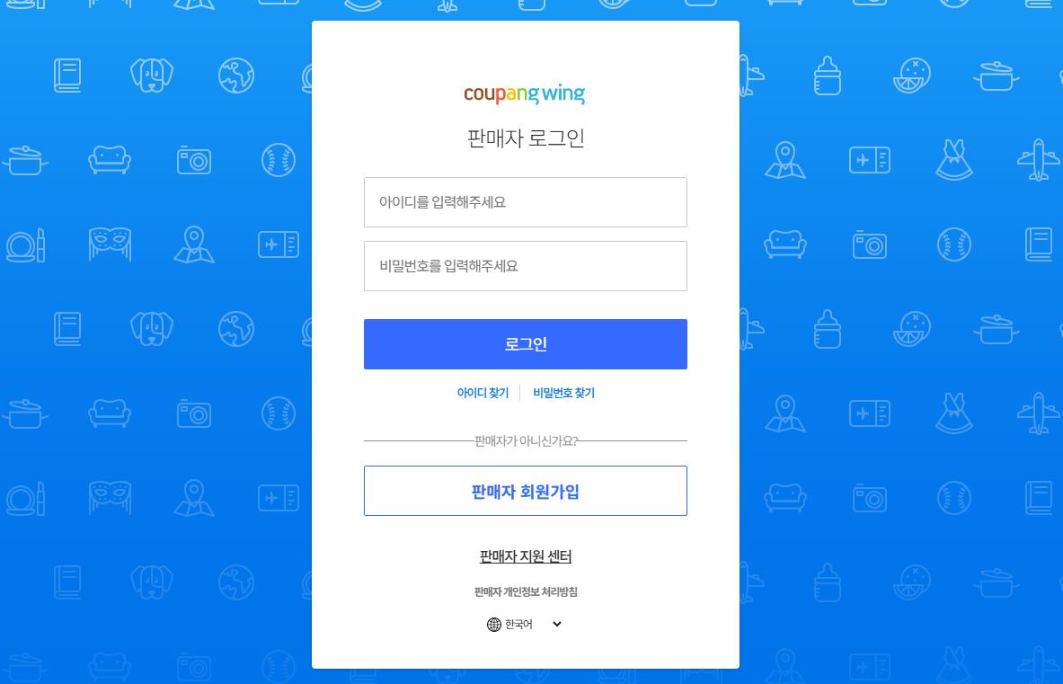 쿠팡 Wing 판매자센터 로그인