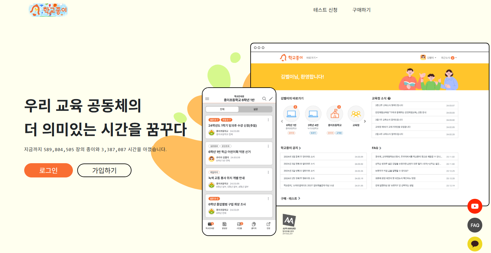 학교종이는 교육공동체의 디지털 소통 플랫폼으로, 선생님들이 교육 연구와 학생들과의 소통에 더욱 집중할 수 있도록 돕는 웹 기반 애플리케이션입니다. 200만 명의 사용자가 함께하는 이 서비스는 학교와 가정 간의 소통을 혁신적으로 개선하고 있습니다.