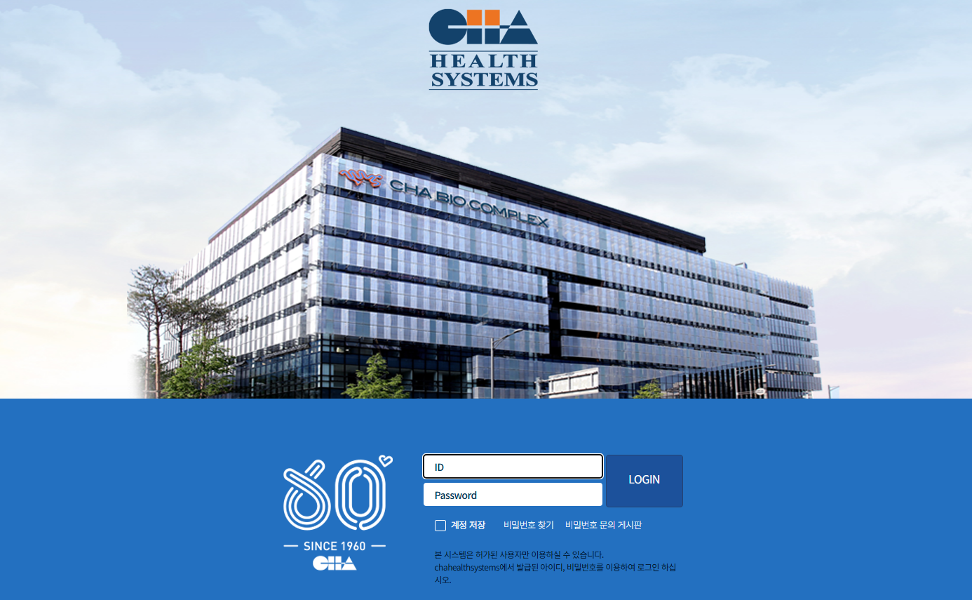 - 통합 인증 시스템: 차헬스시스템 아이디와 비밀번호로 로그인