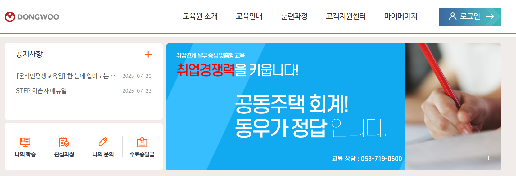 동우평생교육원 홈페이지